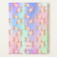 A trendy iridescent colored background with unicorn pastel colors in pink, purple, mint green. Decorated with a golden colored unicorn pattern. Personalize and add a name and a year written with a girly modern hand lettered style script. Purple colored letters.