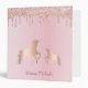 A rose gold colored background. Faux rose gold glitter drips as decoration and two rose gold colored fantasy unicorns. Template for a name, a modern dark rose gold colored hand lettered script. Add your text on the spine. Perfect for school homework, back to school.