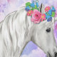 Image By Christina Li | Shutterstock. Image ID: 774271843 | This pattern features white unicorns surrounded by pink roses.