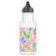 "Unicorns Sprinkled with Love" displays a colorful unicorn pattern featuring the orange, yellow, pink, blue, and green mystical creatures . In the middle is a label outlined in pink for customizing your name. Purchase yours today!