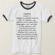 The product was as advertised. The message is succinct and is an eye-catcher. This shirt gets a heap of feedback from onlookers. Most ask you to stand still while they finish reading the definition. They then either give you the thumbs-up or nod any walk away. Either way, its a real conversation starter and so far, no one has disagreed enough with the print to verbalize. The material is fairly light, but the print is stable enough to withstand washes and some activity. A fair deal. Readable and durable.