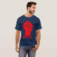 My 11 yo wore adult XL (5’7” 165#). The 8yo is small framed. She wore adult small and tied it in the back. Grandma wore adult large with long sleeve shirt underneath. Tall girl adult medium. Dark haired male adult large. Good quality dark Heather gray, Gildan brand shirt. -it was next up from basic choice and cost about $20 per shirt. Not too thick or thin. Washed and dried well, no major shrinkage. Not see-through. Can wear a bra under it fine. Screen print is just as shown and well done, front and back.