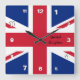 Union Jack Clock, patriotic home UK, British Flag Square Wall Clock