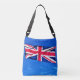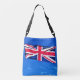 Only from TheFotoScope. 'Cool Britannia'! A patriotic Union Jack flag fluttering in the breeze against a blue sky is depicted on this cross-body tote bag. Can be used for a quick trip to the shops or just for out-and-about use. Also available as a shoulder bag.