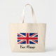 A canvas bag with the Union Jack, the flag of Great Britain - Northern Ireland, England, Wales and Scotland, in red white and blue.