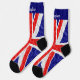 This pair of union jack flag design socks are a soft fabric covering for the feet, typically worn inside shoes to provide comfort, warmth, and absorbency. You can customise this pair of socks with any text of your choice. Should you require any help with customising then contact us through the message link on this page. Flag of Great Britain design pair of socks.