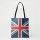 Show your patriotic side with this tote bag featuring a distressed red, white and blue union jack United Kingdom flag,