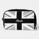 Union Flag (also known as the Union Jack), British flag in a black, white and gray design. With name added to the front in white that can be customized you your own name, or name of person to gift to.