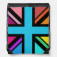 Union Jack/Flag Multicolored+Black Design Drawstring Bag