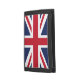 The standard flag for the United Kingdom is the Union Jack. The flag contains red and white crosses on a blue background which combined three other flags of Great Britain -- the red cross of Saint George of the Kingdom of England, the white cross of Saint Andrew for Scotland , and the red cross of Saint Patrick for Ireland.