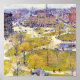 Union Square in Spring (1896) by Childe Hassam is a vintage impressionism fine art landscape painting. An aerial view of Union Square in New York City. In the foreground is the gabled roof of the small public comfort station inside the park. In the center are patches of green grass, gardens and lawns with trees starting to bloom. Across Union Square are the buildings on 14th Street.