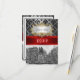 Customizable Invitations and accessories with a black and white view New York City's Union Square Park in the winter, lightly covered with snow. It also features a black damask pattern against a silver gray background, a red ribbon and a white label in your choice of a silver or gold look frame.