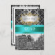 Customizable Invitations and accessories with a black and white view New York City's Union Square Park in the winter, lightly covered with snow. It also features a black damask pattern against a silver gray background, an aqua / teal ribbon and a white label in your choice of a silver or gold look frame.