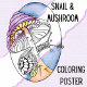 Color this very unique adult coloring poster featuring a cute snail on a mushroom. Get lost in the intricate patterns of this doodle artwork with your favorite crayons, markers, and paint! This large coloring poster makes a great group activity for your next party.