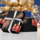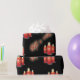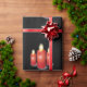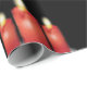 Unique gift wrap for your unique holiday gifts. A series of red candles on a black background with the words ALL IS CALM. By Scarebaby Design.