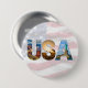 ⭐🎆🦅❤️ This unique and one-of-a-kind button has an almost ethereal image of an American flag swaying in the background with bold letters. "USA" takes center stage with its letters containing American landmarks and locations.