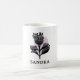This stylish white ceramic mug features a minimalist black floral design with delicate details and a subtle lavender accent behind the flower. Personalized with the name "SANDRA" in bold, classic typography, this mug combines elegance and simplicity, making it a perfect gift or personal keepsake for anyone who appreciates refined, modern aesthetics.