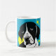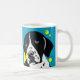 Black and white English Pointer art with yellow circles on coffee mugs that every dog lover will love.