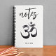 My custom one-off black Om Symbol is a textured metal grid print with 'notes' script text and name on a platinum color background. Change name and text using the simple Template provided. This notebook contains 80 pages, college lined in black and measures 6.5" x 8.75". Ideal personal budget-friendly gift for that special someone who has everything. See "About This Product" for more information.
