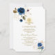 Unique Blue Gold Flowers First Holy Communion Invitation