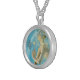 I chose gold plated so that the metal would not react with my skin oils and perspiration. But, I changed the necklace from the gold plated one to a sterling silver. My skin cells will tarnish the silver. But it will not look as bad if some portion of the gold plated necklace somehow became compromised. Zazzle did a find job turning the picture into a pendant for me. As you can see, the colors and the printing of the final product, match the preview. The picture I took is not very clear. But I am pleased with the product I received.