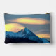 The unusual shape of the clouds and the way they catch the late day sun make them appear glowing. A beautiful blue sky with snow covered mountains set below. Clouds above assume the look of hoovering UFO's instead of a peaceful grouping of light clouds illuminated from the golden rays of a late days sun.
