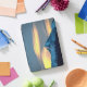 I was super excited when I got my cover in. It is attached by a magnet across the edge. I don’t think it will be very protective but it is very cute. I’m going to keep my iPad in a sleeve and use this face cover while I have it out. It folds to create a tilt for better viewing and to keep the iPad at a slight angle for typing. The colors are bright and it is fun. I’ve really enjoyed it. The personalization looks like amazing. It is the same color as the picture and is the same brightness. Well done! Very nice.