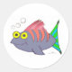 Unique Colorful Fish Cartoon with Bubbles Classic Round Sticker