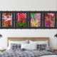 Unique and dramatic modern abstract design in vibrant colors: red, purple, blue, yellow and pink shades. A stunning combination of liquified abstract pattern and angled shapes, that turn your home into art gallery! This set adds a touch of elegance to your home or office. The print set includes 4 art pieces that are separated and can be each mounted separately. The 4 art pieces can be showcased separately or as a one stunning art gallery piece! It can be hang in the living room, bedroom, kitchen, entranced of the house and even in the office. You can edit the design if wanted, adding your own text or image to personalize it to your specific needs. It’s customizeable and easily can be edited if wanted. This print set can be a great gift for your wife or a girlfriend at a party, a birthday party,, anniversary celebration, valentine’s day or wedding. Surprise your loved ones with this museum quality art piece that is guaranteed to make an impression and a “Wow! Effect” to any space, creating the effect of a dramatic and sophisticated art gallery piece at your home.