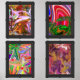 A set of 4 supreme quality prints with frames, and unique colourful abstract marble liquified, with 4 different designs that anyone will fall in love in them.
