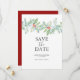 These custom Christmas date cards feature a top boarder of elegant watercolor winter greenery. The words "Save the Date" are typeset in charcoal grey over a crisp white background. use the template fields to type your personalized holiday information. The card reverses to a matching color. To see more of this Christmas wedding theme visit www.zazzle.com/dotellabelle