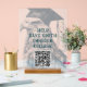 Enhance your graduation celebration party with a custom QR Code acrylic sign. Eagle grad design makes a unique symbolic statement for your special occasion. The QR Code can be used for a college fund site, webpage, and more. Just add your details. Easy to use template. Dark blue teal colors with custom eagle grad design. Great way to coordinate your celebration party. Use the template to personalize.