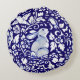 Unique Dark Blue & White Rabbit Dedham Delft Round Pillow