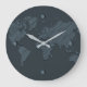 Bring the wonder of the world to your home with this unique modern abstract world map wall clock. Inspired by an artistic hand drawn sketch, this minimalistic monochrome world map clock features a modern abstract design in a gunmetal gray color palette with black accents and coordinating contemporary dark grey cyan blue hour markers; a layered design that gives depth of perspective with highlights and shadows.