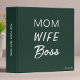 Unique Dark Green Mom Boss Wife Quote Script 3 Ring Binder