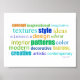 A unique collage featuring design words in bright colors and a variety of interesting fonts. Great to spruce up your design school, office or store.