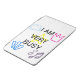 I was super excited when I got my cover in. It is attached by a magnet across the edge. I don’t think it will be very protective but it is very cute. I’m going to keep my iPad in a sleeve and use this face cover while I have it out. It folds to create a tilt for better viewing and to keep the iPad at a slight angle for typing. The colors are bright and it is fun. I’ve really enjoyed it. The personalization looks like amazing. It is the same color as the picture and is the same brightness. Well done! Very nice.