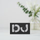 A cool dark look DJ businesscard template. A stunning design with the white text dj with speakers and a dark background comined with the logo of a abstract LP. A good and unique dj businescard.