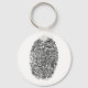 This keyholder securely fastens keys to the ends of a chain. It allows only the 7.5 Billion people on earth (and several aliens) whose fingerprints UNIQUELY match the fingerprint drawn on it to insert their thumbs on it without feeling a sudden, but very sharp, sense of guilt and ennui.