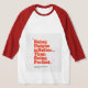 I bought the Men's Basic 3/4 Sleeve Raglan T-Shirt, White/Navy. It arrived on time for a gift and is of a great quality and fits perfectly! So cute! Zazzle has done it again! The printing was clear and filled in solidly.