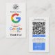 This Google review card with has a simple design and straight forward messaging. It is 100% customizable! The front of the card has a colorful Google image with your logo and business name. The lower portion on the front side asks the question, how are we doing? With the call to action to leave a review on google. The backside of the card has another solicitation for a review stating, Please take a moment to leave us a review on google. Below that is the QR code where you will embed your Google my business review link. This review card serves a dual purpose as a review card and business card! The backside allows you to add your phone number, email address and website address. Put this card in the hands of every customer and watch your reviews soar!