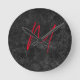 Unique grey red monogram name initial calligraphy round clock