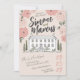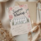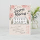 Unique Hand Drawn Villa Pink Green Floral Wedding Invitation