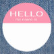 Round circle sticker with the traditional "Hello my name is" wording on baby girl pink background color, great for gender reveal or baby shower events.