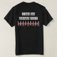 My 11 yo wore adult XL (5’7” 165#). The 8yo is small framed. She wore adult small and tied it in the back. Grandma wore adult large with long sleeve shirt underneath. Tall girl adult medium. Dark haired male adult large. Good quality dark Heather gray, Gildan brand shirt. -it was next up from basic choice and cost about $20 per shirt. Not too thick or thin. Washed and dried well, no major shrinkage. Not see-through. Can wear a bra under it fine. Screen print is just as shown and well done, front and back.