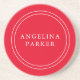 Unique Modern Minimalist Plain Red Your Name Coaster