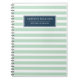 Unique personalized office stationery notebook with a mint green and white stripe pattern, custom name template / subject title template. A cute and cool gift for back to school for people that like custom name gifts that are useful.