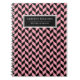 Unique, cool teen girl office stationery notebook with a pink and black geometric herringbone pattern, custom name template / subject title template. A stylish, girly gift for back to school.