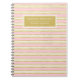 Unique teen girl office stationery customized notebook with a simulated gold foil, pink and white stripe pattern, custom name template / subject title template. A cute and cool gift for back to school.