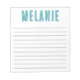 The Unique Name Template Navy Blue and Teal Lined Notepad offers a stylish and personalized stationery solution for your note-taking needs. Featuring a sleek design with black lines for making your to-do list, this notepad stands out with its customizable name template, allowing you to add a personal touch to each page. Whether for work, school, or creative endeavors, this notepad combines functionality with a modern aesthetic to enhance your writing experience.